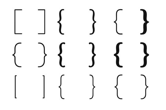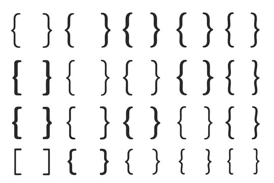 Curly braces and square brackets icon set. 36 diverse bracket styles, vector symbols for code, math, typography, programming UI, web development interface, text formatting, design template elements