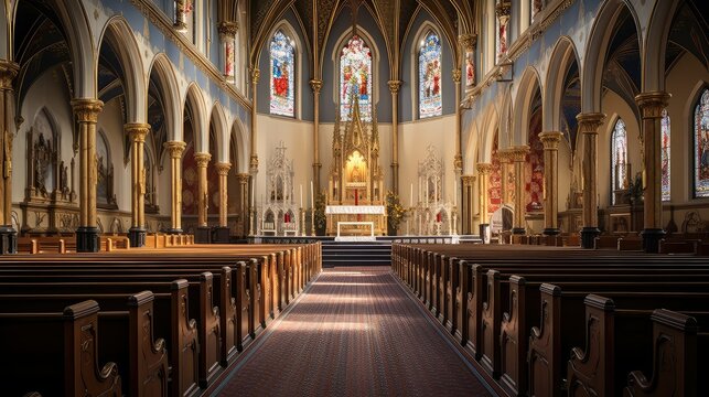 Congregation at a Sunlit Church Service