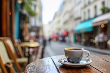 Cozy café atmosphere with fresh steamed coffee cup