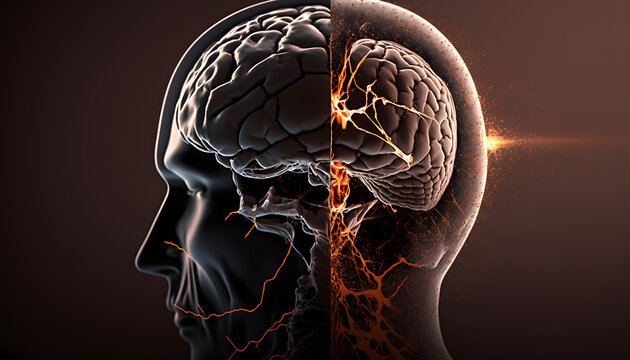 Memory loss due to dementia, alzheimer. Illustration of a human brain losing parts, showing neural pathways and neurons. World mental health day. World Parkinson day concept. Generative ai.