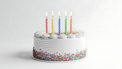 Festive Birthday Cake: A delightful birthday cake, adorned with vibrant candles and colorful sprinkles, symbolizes celebration and joy, inviting you to partake in the moment.