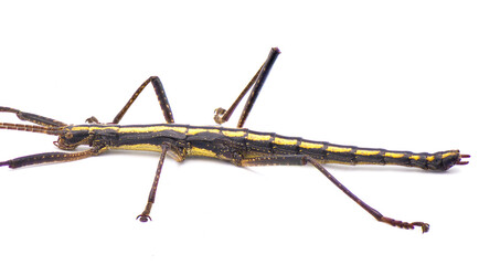 Large southern two striped walking stick -  Anisomorpha buprestoides - isolated on white background great full detail throughout side view Close up version cropped