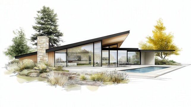 Luxurious interior design living room and amber and sage green kitchen. open space, partial sketch design