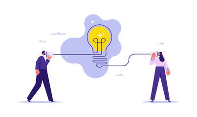 Brainstorm or connect idea concept, teamwork or partnership brainstorming business idea or innovation to solve problem