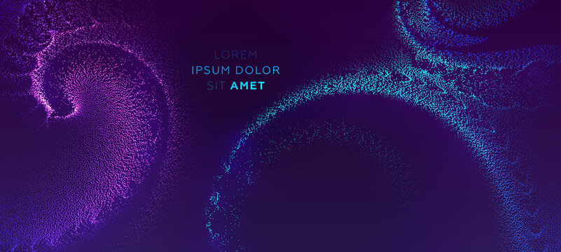 Abstract Waving Particle Technology Background Design. Abstract wave moving dots flow particles, hi-tech and big data background design for brochures, flyers, magazine, business card, banner. Vector
