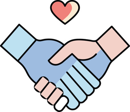 Handshake with heart symbol above, unity and compassion concept, partnership and empathy design, flat vector illustration, Valentine’s Day theme