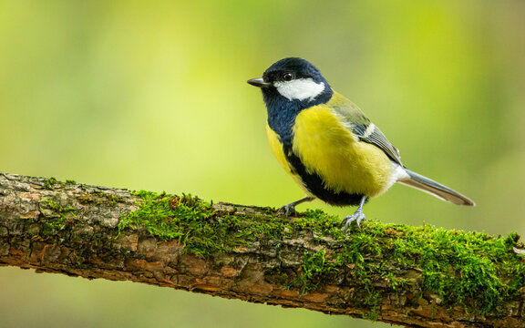 Great Tit (Parus Major) on branch. Wildlife scenery.