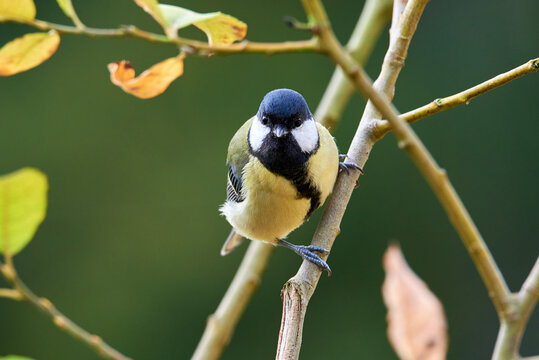 Bird - Great Tit ( Parus major ) sitting on a branch of a tree. Close-up..