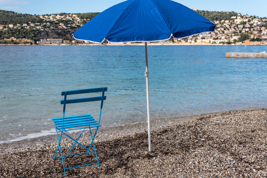 beach blue chair and an umbrella