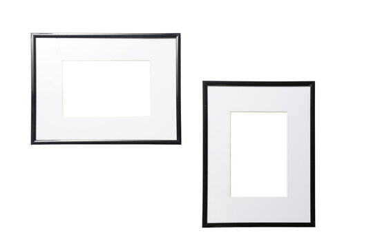 Black picture frame with white passepartout isolated on transparent background, perfect for displaying photos, art, or posters
