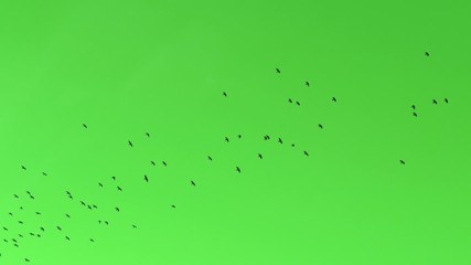 Flock of crows in flight