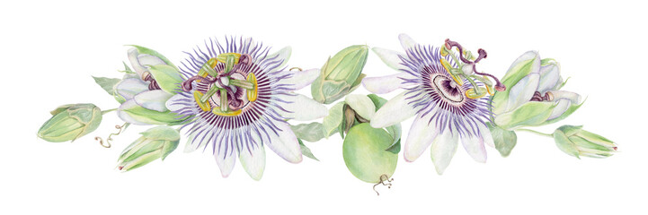 Detailed Watercolor Painting of Passion Flower Vine on Transparent Background,ai generated