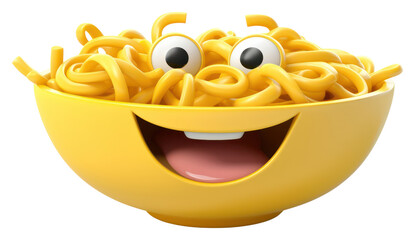 a food pasta emoji on a yellow background. looking cute, adorable, and joyful. cartoon illustration. trendy style. banner advertising concept. ready to eat.  pasta cartoon.