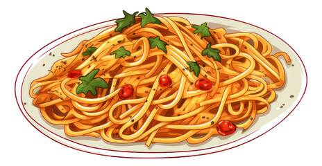 a 2D cartoon illustration of a chef making spaghetti, Italian cuisine theme, white background--ar 16:9