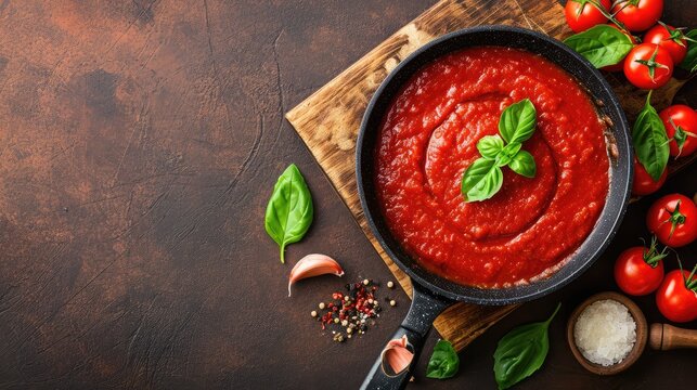 Italian cuisine pasta sauce ingredients with fresh tomatoes and garlic
