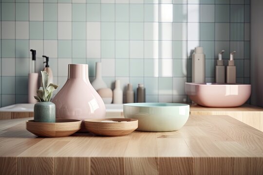 Pastel hued cylindrical pedestal resting on white floor, framed by soft pink, blue, and orange gradient background, highlighting minimal product display environment