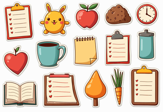 Vector To-Do Lists: Cute Sticker Art, Soft Muted Colors, Modern Simple Designs, Various Pack, Isolated on White Background, Organized Planning, Task Management.