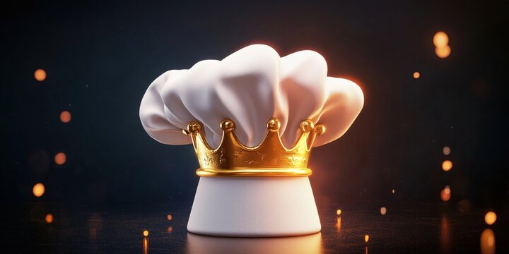 Chef hat with golden crown symbolizing culinary excellence and creativity
