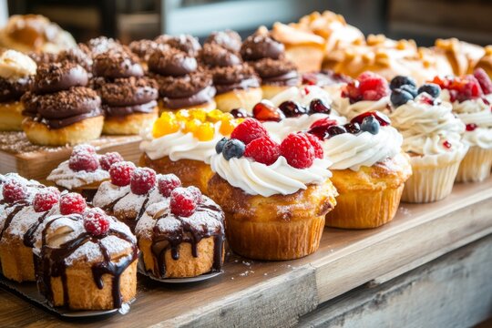Woman choosing pastries in bakery highlighting freshness and indulgence