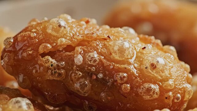 Macro Shot of Open Heart-Shaped Box with Scattered Chocolates on Liquid Gold and Matte Pink Background, Shallow Depth of Field