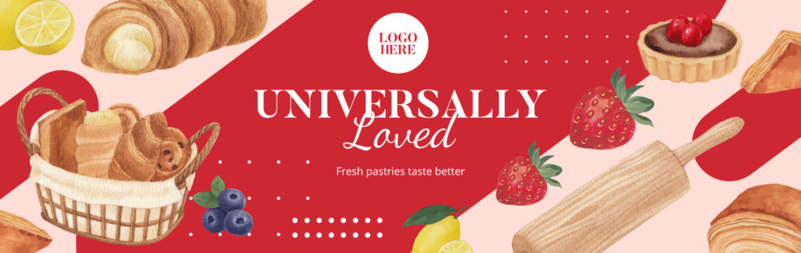 Cake shop, bakery house. Set of design sample flyers for pastry and bread shop, cooking, dessert, sweet products. Vector illustration for poster A4, banner, menu, advertising.