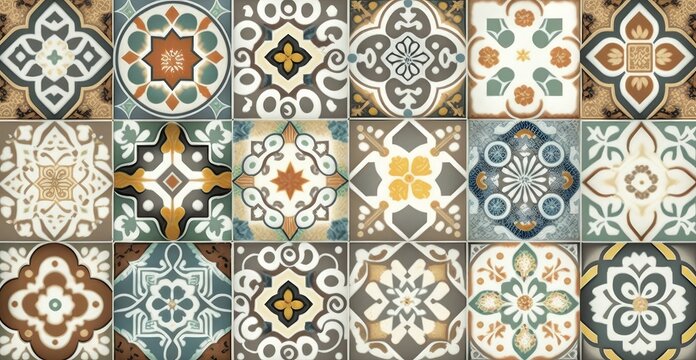 Seamless colorful patchwork Moroccan tile. motifs Majolica pottery tile. Portuguese and Spain decor wall and floor Ceramic tile Design, Generative AI