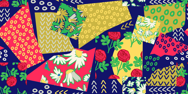 patchwork floral pattern with paisley and indian flower motifs. damask style pattern for textil and decoration