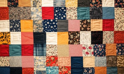 A colorful patchwork quilt, its squares of fabric sewn together with love and care.