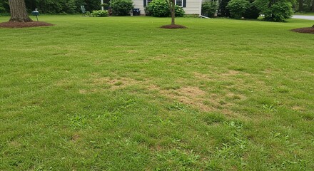 Patchy yard lawn green ruined by dog urine