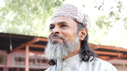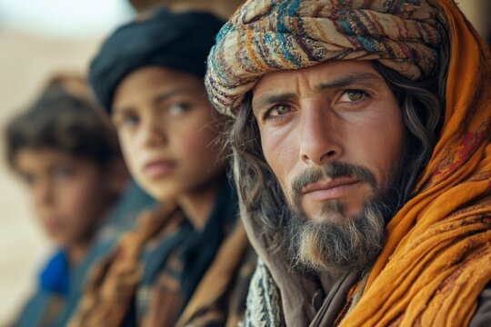 Portrait of a bearded afghan man wearing traditional turban and clothing