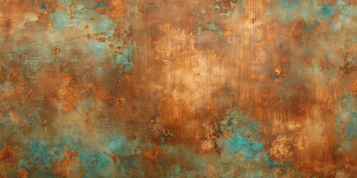 Seamless rusted copper metal patina texture background. Vintage bronze tileable antique pattern backdrop.