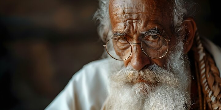 Close-up portrait of an old patriarch with a long white beard and mustache. Biblical character.