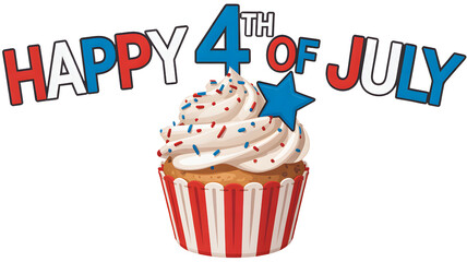 Happy 4th of july patriotic cupcake with star and sprinkles celebrating independence day isolated on transparent background