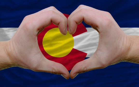 The American flag in the form of a heart is drawn by the child's hand with a red pencil. The Fourth of July is America's Independence Day. The concept of patriotic education.