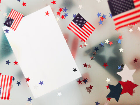 Festive red, white, and blue paper decorations for american holiday celebration for independence, veterans, memorial day and other patriotic holiday celebrations