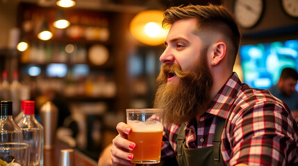 Smiling barista in coffee shop promoting friendly cafe atmosphere