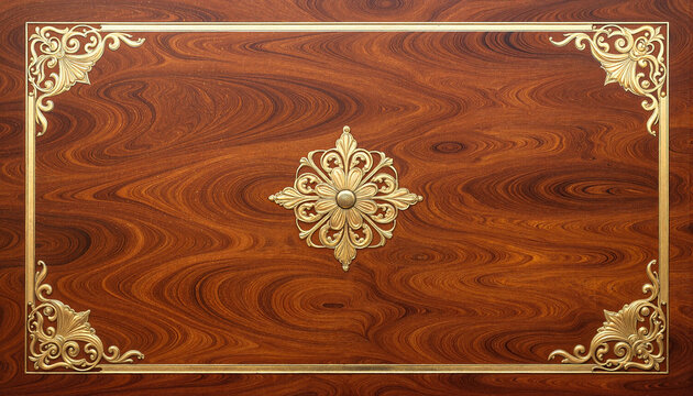 Intricate brass inlay pattern on mahogany surface, elegance in design