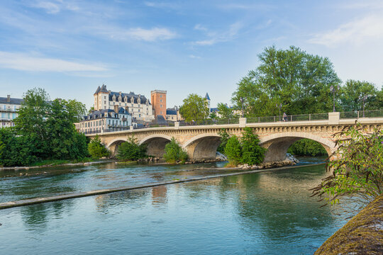 Scenic view of Pau, a famous city in France, featuring the Château de Pau and the river