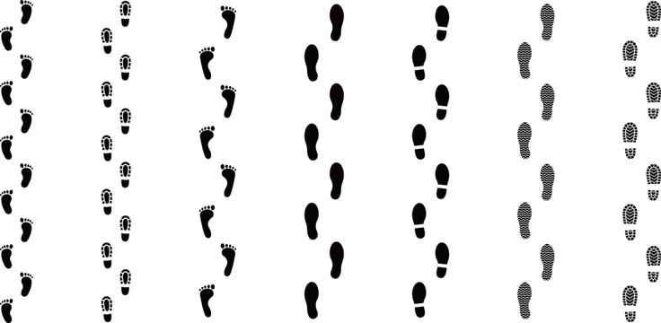 Footprints for pets.dog or cat.Footprint pattern.Cute black silhouette shape paw prints.Pet footprints.Animal footprints. Track dog, cat.silhouette illustration of footprints,vector
