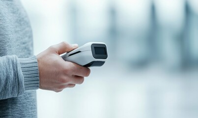 A man uses a portable payment terminal, highlighting the ease of modern contactless transactions.