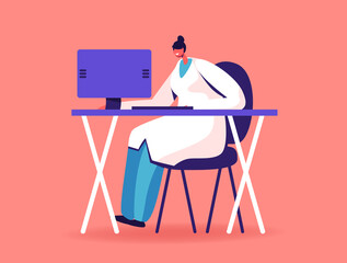 Modern Technology in Hospital, Doctor Character Using Computer to Read Report and Patient Health Information Online