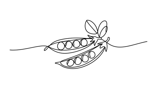Minimal continuous line drawing of pea pod with peas and leaves vector illustration