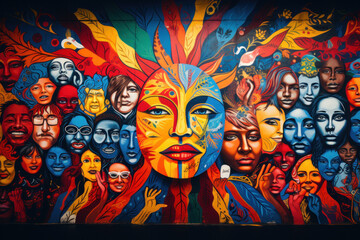 A mural depicting messages of peace and unity, showing the power of art to inspire change. Generative Ai.