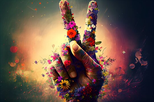 An illustration of a peace symbol with hands in graffiti art on a white background