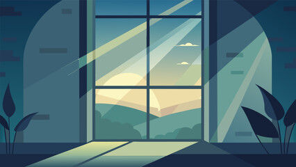 Calm scene with warm sunlight filtering through window at sunset, suitable for peaceful ambiance