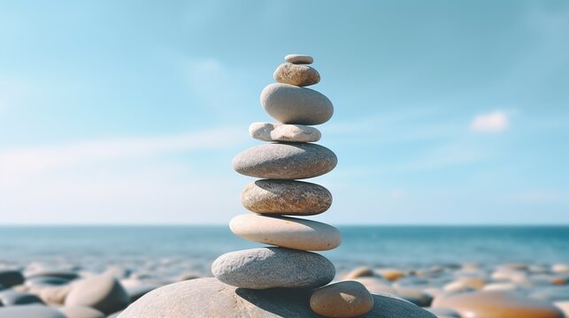 Balance Stones on Beach. Balance and Harmony Concept