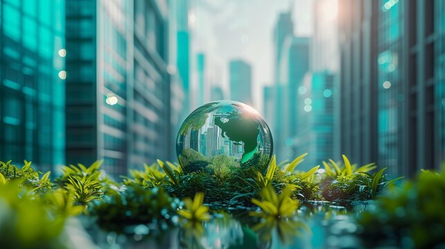 Globe ball with tree growing and green nature cityscape in metropolis city center City of green community and fresh air