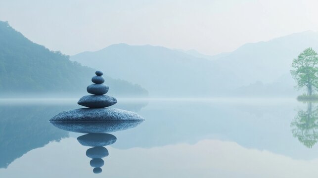 A serene landscape with a variety of cultural symbols gently floating on a calm, reflective lake, Depicting the peaceful coexistence and reflection of diverse cultures
