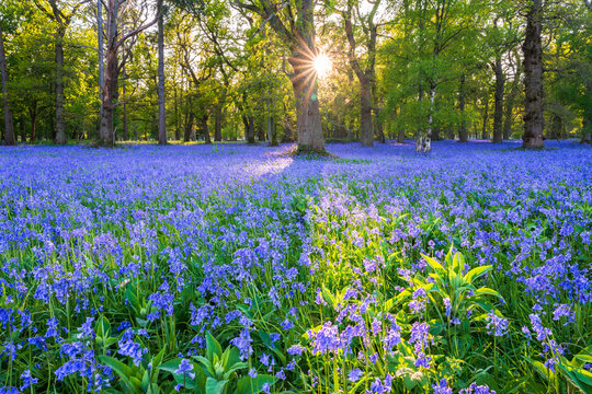 Man enjoys peaceful moment in forest, experiencing nature and tranquility during golden hour
