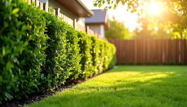 Lush garden with trimmed hedges
